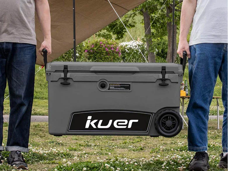 Plastic insulated boxes can keep hot food warm for hours. These boxes feature thick insulation that effectively locks in heat. The KUER 110QT rotationally molded rigid insulated box, Type B (with wheels), is sturdy and durable and won’t soften even when heated. This insulated box maintains a constant temperature, ensuring food safety. Many people use these insulated boxes outdoors to store hot and cold food.